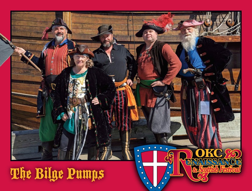 You wanted the best, you got the best! The hottest pirate band in the world…the OKC Renaissance and Scottish Festival is proud to bring you The Bilge Pumps! Live onstage November 8th – 9th, 2023 at the OKC Fairgrounds! The Bilge Pumps are one of the finest Pirate musical groups in the world on land or at sea and we are thrilled to have them onboard to entertain you here in the mighty OKC! Aye, there’ll be sea songs aplenty, shanties and a few laughs thrown in to boot! Yo, ho, ho, it’s a pirate’s life for me!